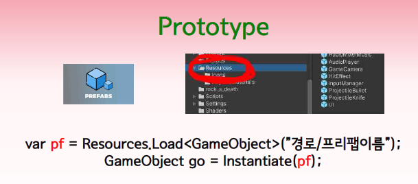 그 프리팹을 호출하여 월드에 배치하는 것이 프로토타입패턴입니다.