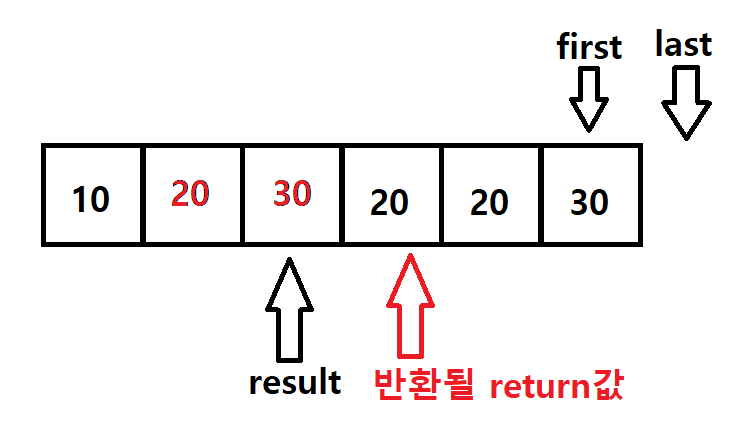 -반환값은 중복없이 나열된 마지막 원소 다음의 반복자를 반환한다.