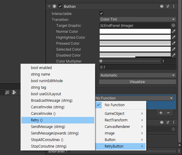 해당 동작으로 간단하게 UI Button의 클릭시 동작 조건을 추가할 수 있다.