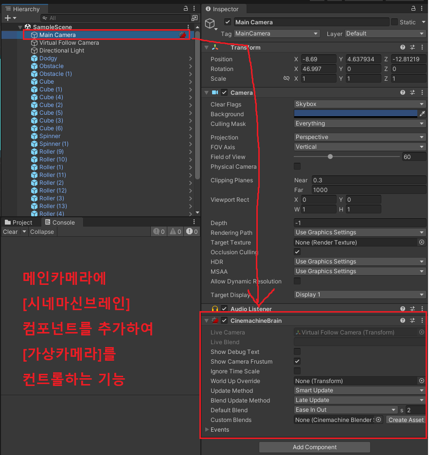 *오브젝트를 따라가는 간단한 카메라 설정하기 - Cinemachine