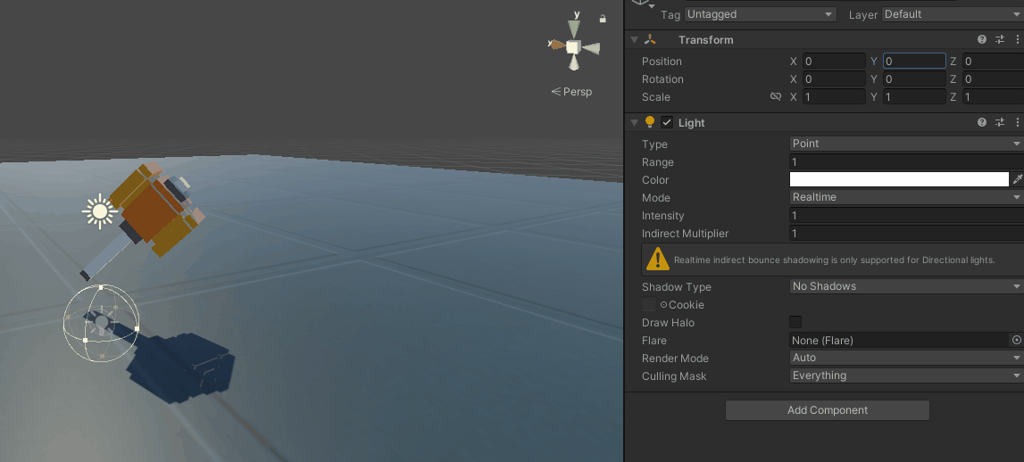 Transforn . y 값 조절 : 위치를 조절하여 빛의 위치 조정