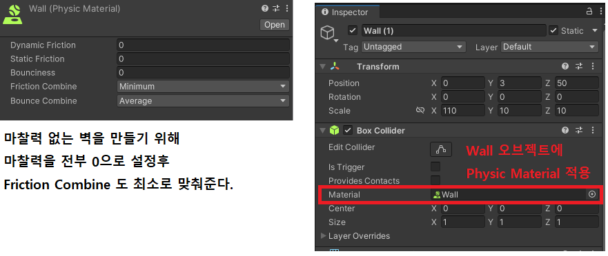 마찰력이 없는 벽을 만들어 Collider에 적용