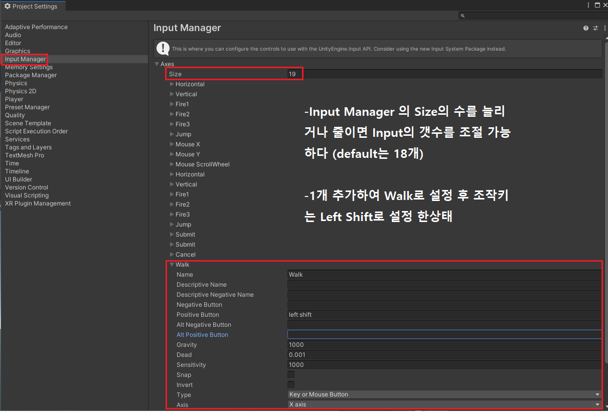 bool wDown = false; //Input Manager에서 추가한 Walk(Left Shift)의 키 유무 체크