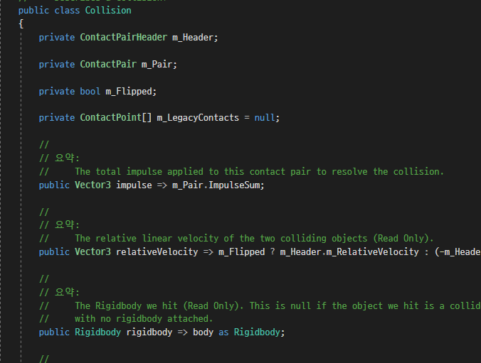 Collsion 객체는 충돌관 관련된 위의 정보를 담고 있기에 해당 타입을 사용하는 것이다.