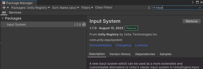 Unity 작업시 기존부터 사용되어왔던 입력처리 패키지로 비교적 쉽게 사용가능하다는 장점이 있다.