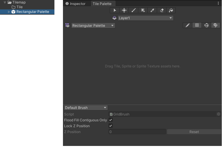 Tile Palette 생성은 프로젝트 창 우클릭 - Create - 2D - Tile Palette - 원하는 타일맵 파레트 선택