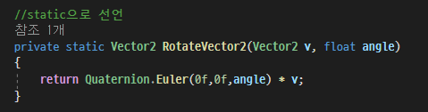 즉, 코드내부에서 회전을 시킬경우 쿼터니언 메서드들을 사용해서 회전을 시켜줘야한다.