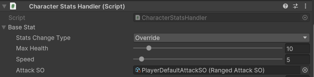 캐릭터 스텟에 AttackSO 라는 ScriptableObject를 추가하여 사용하며 필요할때 데이터를 가져와서 호출할 수있다.