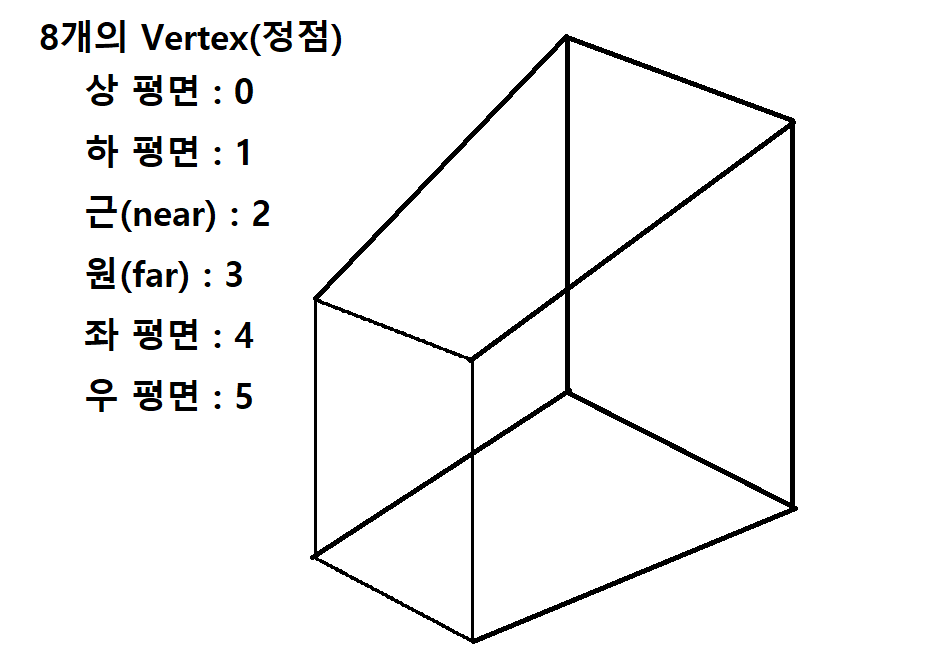 //인덱스 순서에 따라 절두체면(폴리곤)의 윗면이 결정되어 윗면이 법선벡터의 방향이다.(중요)