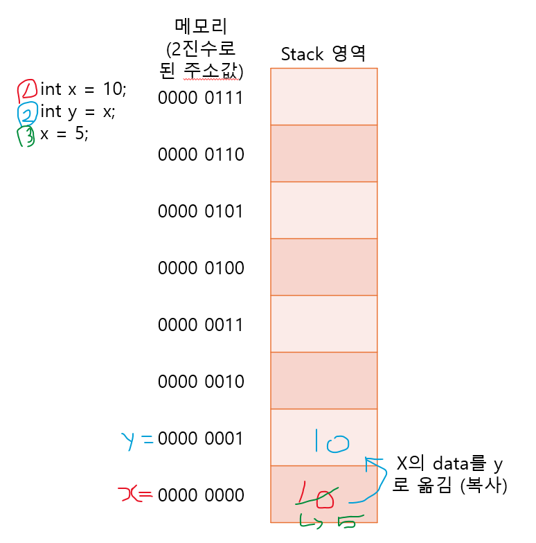 x도 stack 영역에 저장됨